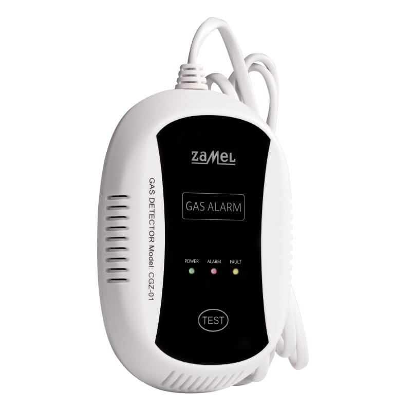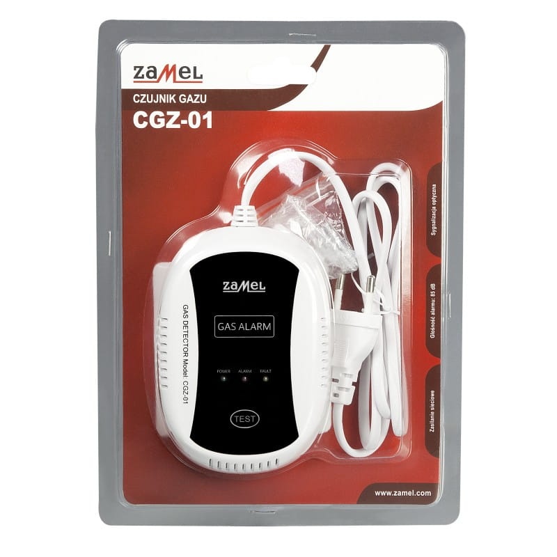 Urządzenie CGZ-01 monitoruje stężenie gazów wybuchowych, takich jak gaz ziemny i propan-butan, w powietrzu, wykrywając ich niebezpieczne poziomy (około 10% dolnej granicy). W przypadku zagrożenia uruchamia alarm dźwiękowy i optyczny, pozwalając na szybką reakcję i zapobieganie wybuchowi lub zatruciu. Urządzenie wyposażone jest w zaawansowany czujnik półprzewodnikowy oraz układ autodiagnostyczny, który sygnalizuje uszkodzenia czujnika. Zasilane jest z sieci 230V, a alarm dźwiękowy osiąga głośność 85dB, zapewniając skuteczne ostrzeganie.