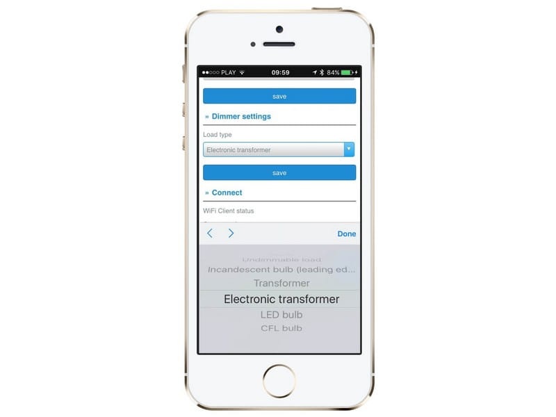 - Typy obsługiwanego oświetlenia: żarówki żarowe, żarówki halogenowe, żarówki led przystosowane do ściemniania