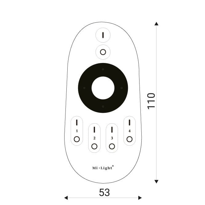 FUT007 to 4-strefowy pilot CCT do kontrolerów MiBoxer, wykorzystujący technologię transmisji bezprzewodowej 2,4G RF. Umożliwia regulację jasności i temperatury barwowej. Maksymalna odległość sterowania do 30 m.
