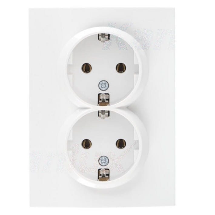 Gniazdo wtyczkowe podwójne z uziemieniem (Schuko) umożliwia zasilenie obwodu elektrycznego o maksymalnym obciążeniu 16A. Gniazdo kompletne nie wymaga dodatkowej ramki.