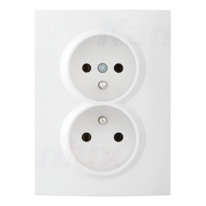 Gniazdo zasilające podwójne z uziemieniem kompletne - nie wymaga dodatkowej ramki.