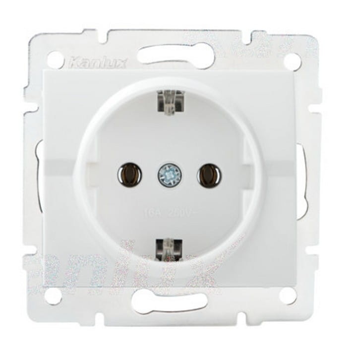 Gniazdo wtyczkowe pojedyncze z uziemieniem (Schuko) umożliwia zasilenie obwodu elektrycznego o maksymalnym obciążeniu 16A.