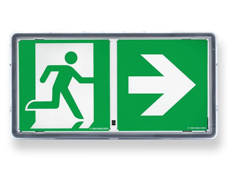 - możliwością wyznaczania kierunku ewakuacji - oprawa w zestawie posiada zestaw znaków ewakuacyjnych do naklejenia, z których można stworzyć różne kombinacje