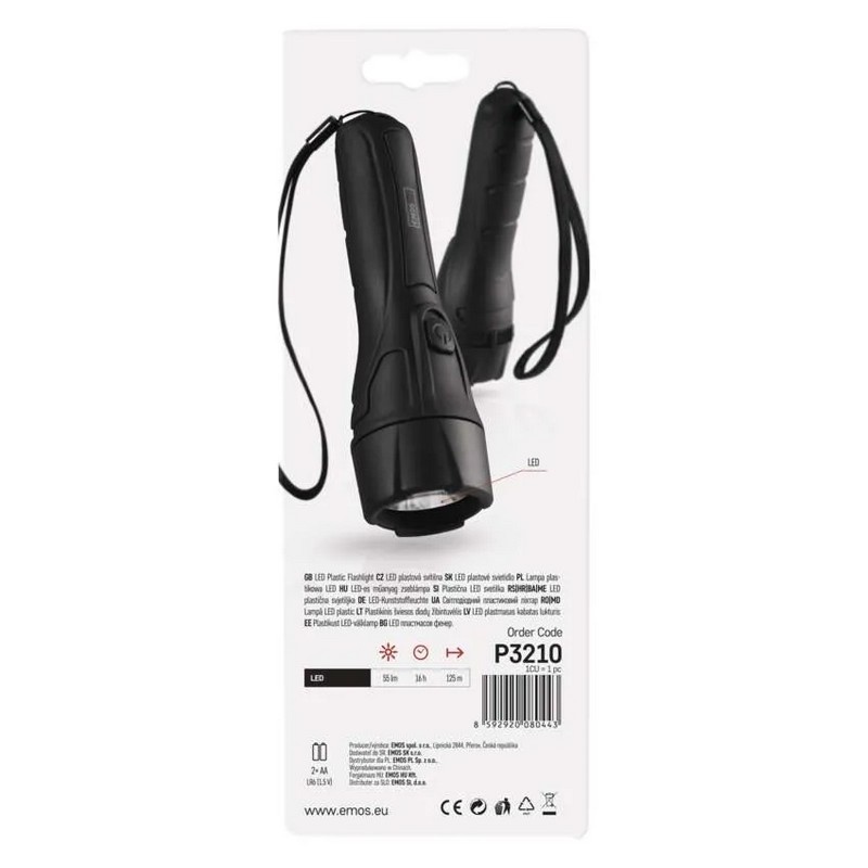 Poręczna latarka LED EMOS P3210 to lekka i trwała konstrukcja z tworzywa, oferująca zasięg do 125 m przy strumieniu świetlnym 55 lm. Dzięki zasilaniu dwiema bateriami AA działa nieprzerwanie do 16 godzin, co czyni ją idealnym wyborem do zastosowań domowych, terenowych oraz awaryjnych. Prosty, wytrzymały design i odporność na uderzenia gwarantują niezawodność w każdej sytuacji. Brak źródła zasilania w zestawie! - sprawdź pasujące baterie