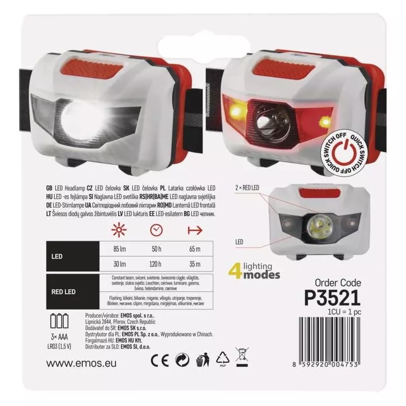 Latarka czołowa EMOS P3521 to funkcjonalne i trwałe rozwiązanie dla osób poszukujących lekkiego, wodoodpornego i wydajnego oświetlenia. Dzięki funkcji szybkiego wyłączania i czterem trybom pracy jest doskonałym narzędziem dla majsterkowiczów, sportowców i użytkowników terenowych.