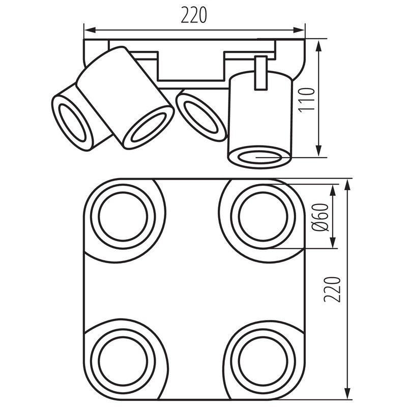 Oprawa wyposażona jest w cztery ruchome głowice, które pozwalają skierować światło dokładnie tam, gdzie jest potrzebne. Każdy z punktów przystosowany jest do źródła światła GU10 (PAR16) o maksymalnej mocy 10W. Obudowa wykonana z trwałego stopu aluminium zapewnia długowieczność i odporność na codzienne użytkowanie. Brak źródła światła w zestawie! - sprawdź pasujące żarówki LED