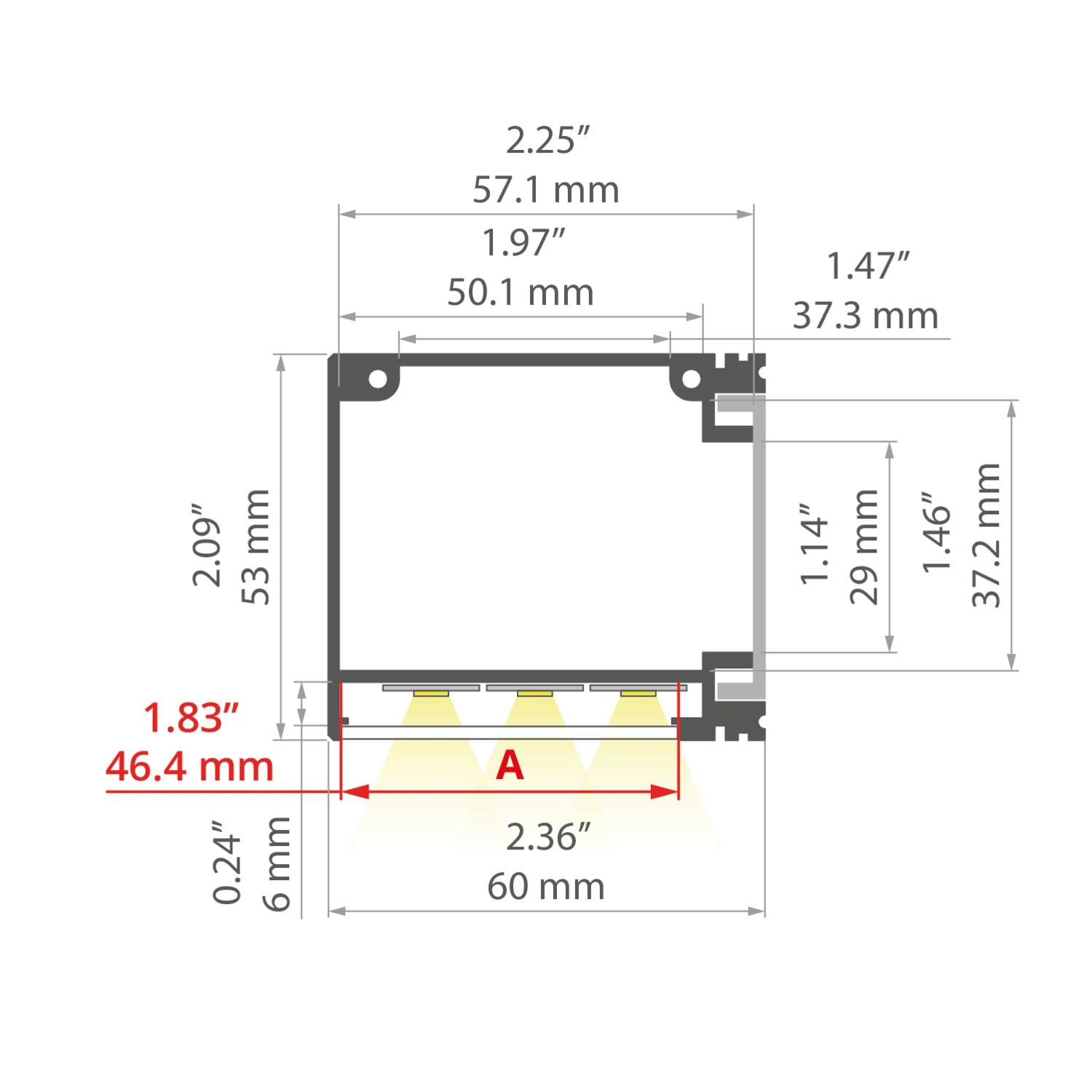- miejsce na pasek LED: 50.1 mm