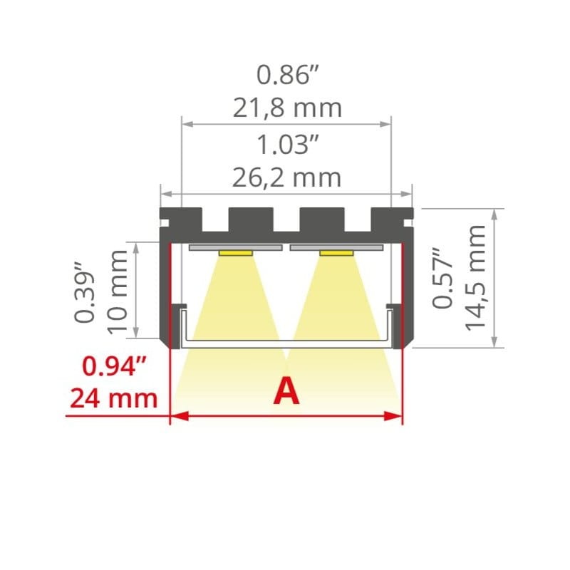 - linia światła możliwa do uzyskania z osłoną LIGER-22 oraz paskiem LED z minimalną ilością 120 LED/m