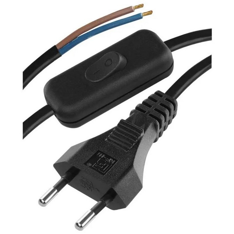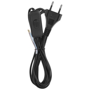 Przewód przyłączeniowy PVC 2x0,75mm² 2m z wyłącznikiem KF-H1/S051E4 czarny