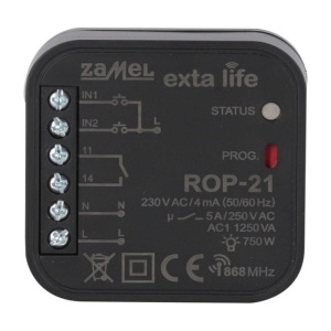 Radiowy odbiornik puszkowy ROP-21 to element końcowy systemu EXTA LIFE, który umożliwia sterowanie dowolnymi urządzeniami takimi jak rolety okienne, brama wjazdowa, ogrzewanie oraz inne odbiorniki elektryczne. Urządzenia sterowane są nie tylko z poziomu nadajników radiowych, ale także za pomocą smartfonów i tabletów, z dowolnego miejsca na świecie Do odbiornika można wpisać większą liczbę nadajników co daje możliwość niezależnego sterowania z kilku miejsc. Posiada wbudowaną funkcję zdalnej aktualizacji oprogramowania z poziomu kontrolera co jest przydatne w sytuacji wprowadzania nowych funkcjonalności. Urządzenie przeznaczone jest do montażu w puszkach instalacyjnych pod- i natynkowych.