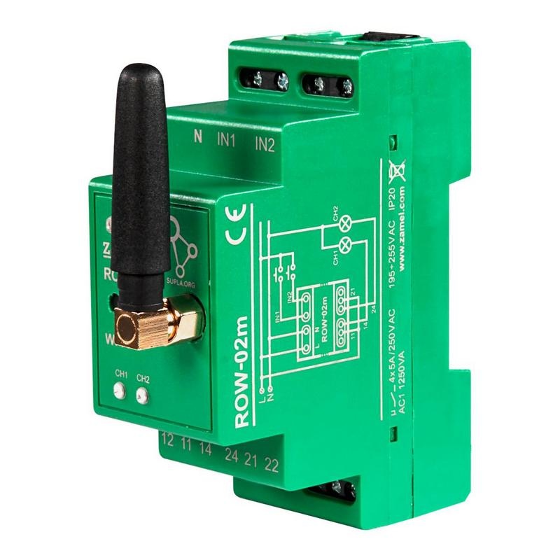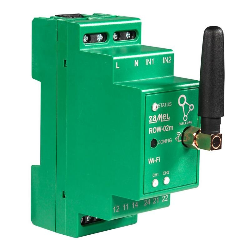 Odbiornik modułowy Wi-Fi ROW-02M z systemu Supla umożliwia niezależne sterowanie dwoma urządzeniami lub obwodami. Montowany w szafie rozdzielczej, jest wszechstronny i sprawdza się zarówno przy sterowaniu obwodami 230 V, jak i niskonapięciowymi. Komunikuje się przez Wi-Fi 2.4 GHz i pozwala na lokalne oraz zdalne sterowanie z poziomu smartfona. Obsługuje dwa kanały, które można sterować niezależnie, współpracując zarówno z łącznikami zwykłymi, jak i przyciskami.