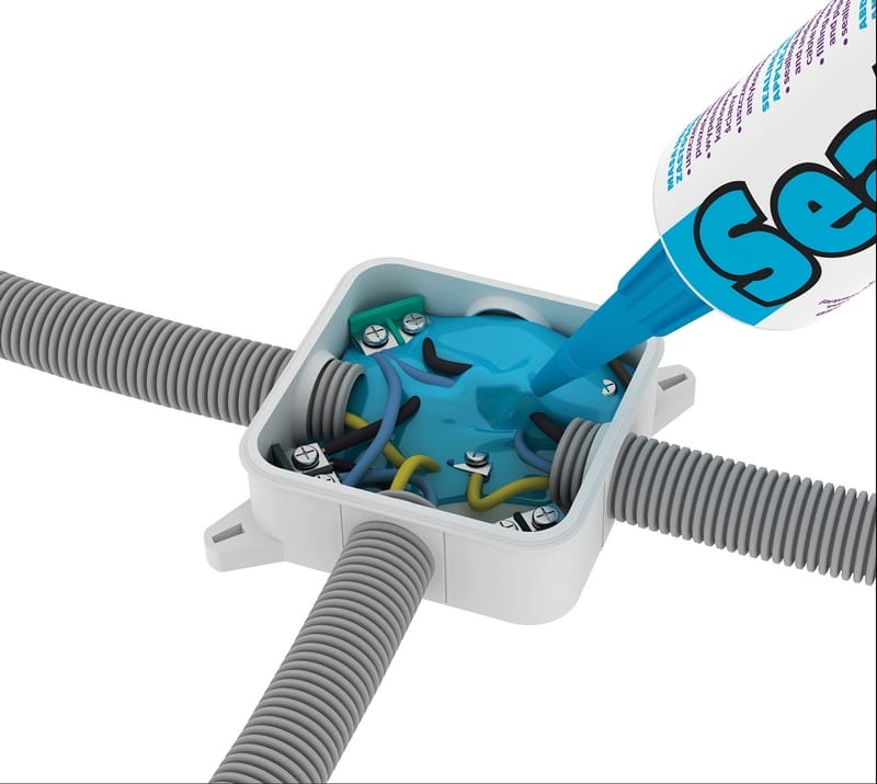 - uszczelnianie i wypełnianie puszek w zewnętrznych i podziemnych instalacjach elektrycznych, teletechnicznych, przewodów w peszlach, rurach ochronnych, dławikach itp.