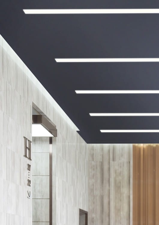 - Montaż „od dołu” daje możliwość projektowania opraw w suficie „od ściany do ściany”