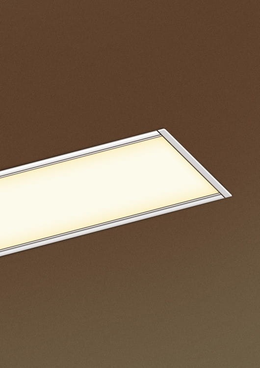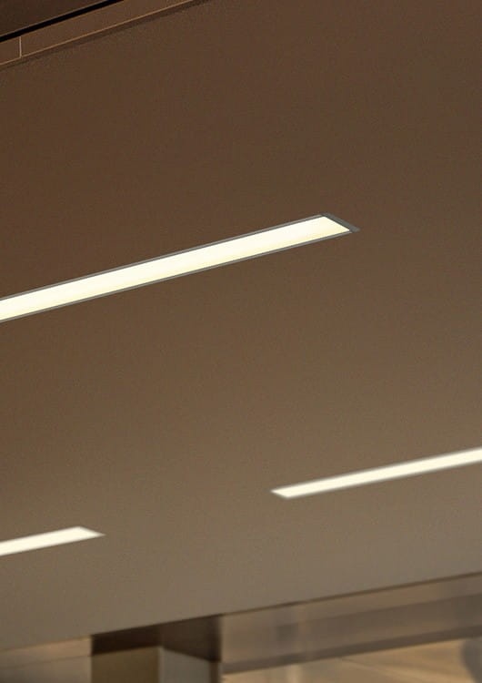 - Montaż „od dołu” daje możliwość projektowania opraw w suficie „od ściany do ściany”