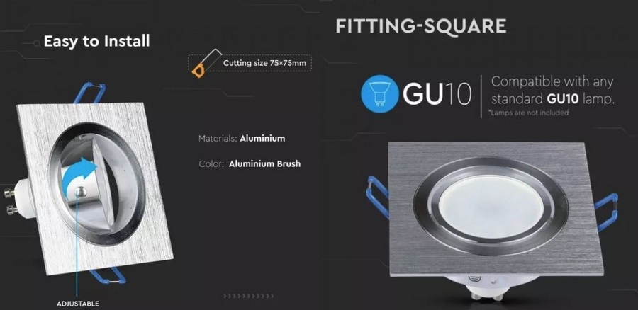 VT-782 SQ oprawa sufitowa kwadratowa aluminium szczotkowane V-TAC