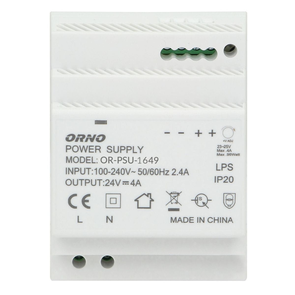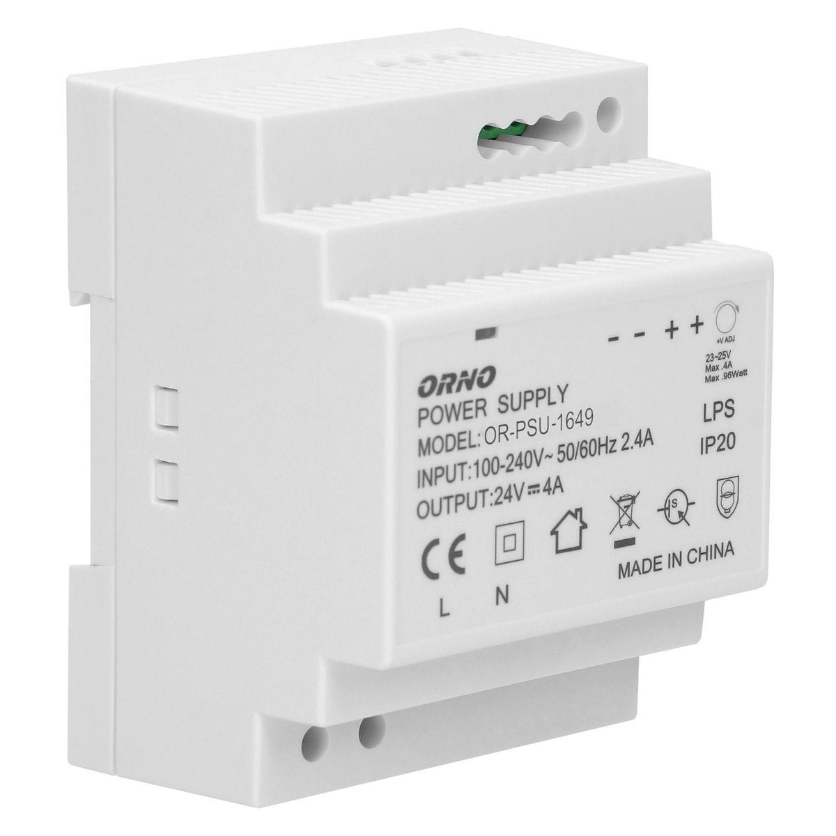 Wysokowydajny, charakteryzujący się stabilną pracą zasilacz o mocy 100W i napięciu wyjściowym 24V DC, istnieje możliwość regulacji napięcia wyjściowego. Zasilacz został zaprojektowany do montażu na szynę DIN i ma szerokie możliwości zastosowania, np. aplikacje przemysłowe, instalacji niskonapięciowych takich jak CCTV czy systemy alarmowe. Zasilacz posiada zabezpieczenia: przeciążeniowe, zwarciowe i nadnapięciowe. Załączenie zasilacza sygnalizuje dioda.