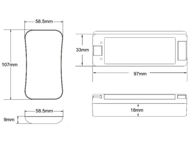 - Wymiary odbiornika: 97 x 33 x 18 [mm] (długość x szerokość x wysokość)