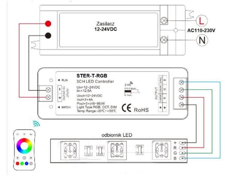 Zestaw sterowania RGB UNISTER-T-RGB 12-24V DC 4A/KANAŁ