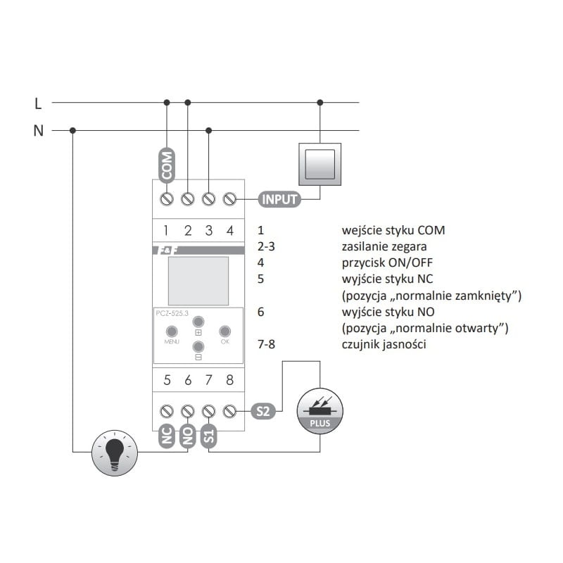 Zegar astronomiczny PCZ-525.3 służy do załączania i wyłączania oświetlenia lub innych odbiorników elektrycznych, zgodnie z porami zachodu i wschodu słońca z możliwością zaprogramowania przerwy nocnej, czyli czasowego wyłączenia odbiorników w celach oszczędnościowych.