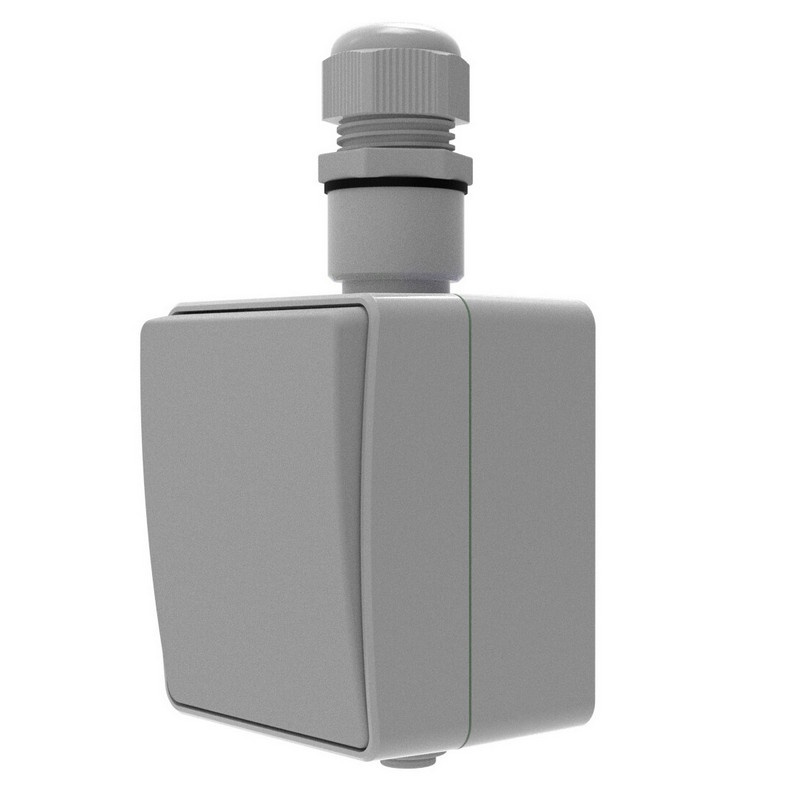 Korpus wykonano z tworzyw PC, PP i TPE, co w praktyce przekłada się na solidne użytkowanie w instalacjach narażonych na zmienne warunki otoczenia. Szary kolor jest neutralny i typowy dla osprzętu montowanego na zewnątrz oraz w strefach technicznych.