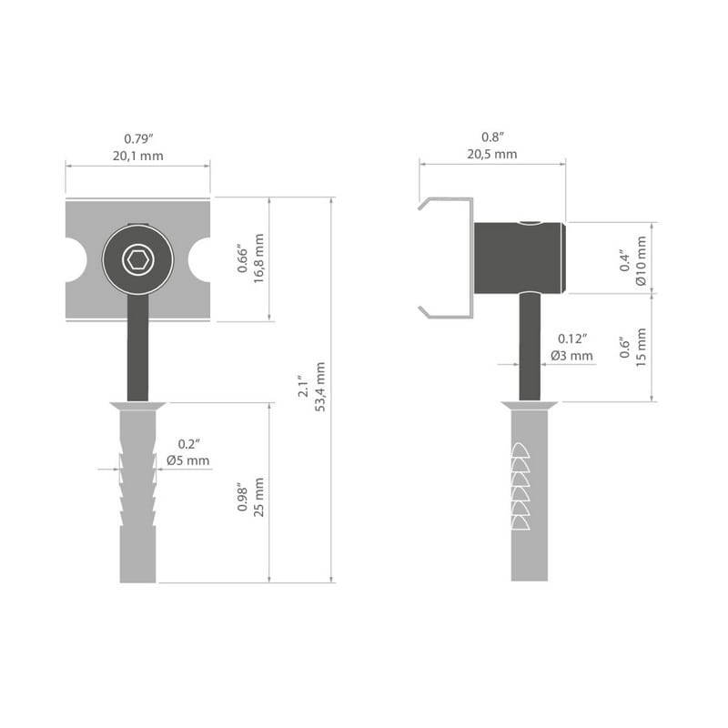 Gotowy zestaw mocowań M4 elementów do zamocowania na ścianie murowanej lekkiej oprawy oświetleniowej. Zawieszka wyposażona jest w MOCOWNIK PDS. Do ściany przytwierdzona jest na PRĘCIE FI-3, zakończonym kołkiem rozporowym. Doskonale łączy się z profilami MICRO-PLUS, 45-16, REGULOR, TAMI, TAPO tworząc z nimi spójne aranżacje. Artykuły uzupełniające znajdują się na pasku, w zakładce Produkty powiązane