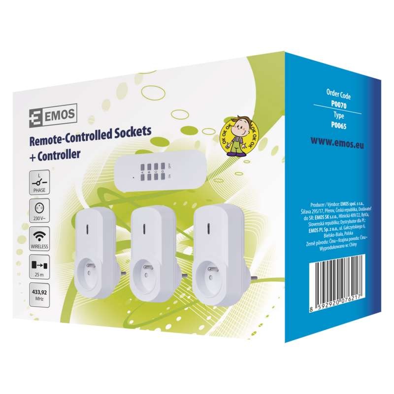 Zestaw trzech gniazd 230V 1000W zdalnie sterowanych pilotem EMOS P0070