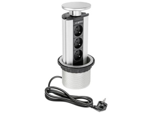 Gniazdo meblowe Ø10cm wysuwane z blatu przewód 1,5m 3x2P+Z srebrne