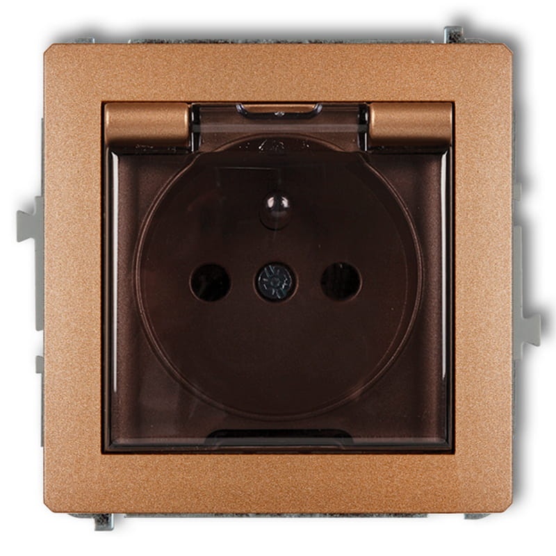 Mechanizm gniazda bryzgoszczelnego z uziemieniem 2P+Z klapką 8DGPB-1ZDP złoty metalik Deco