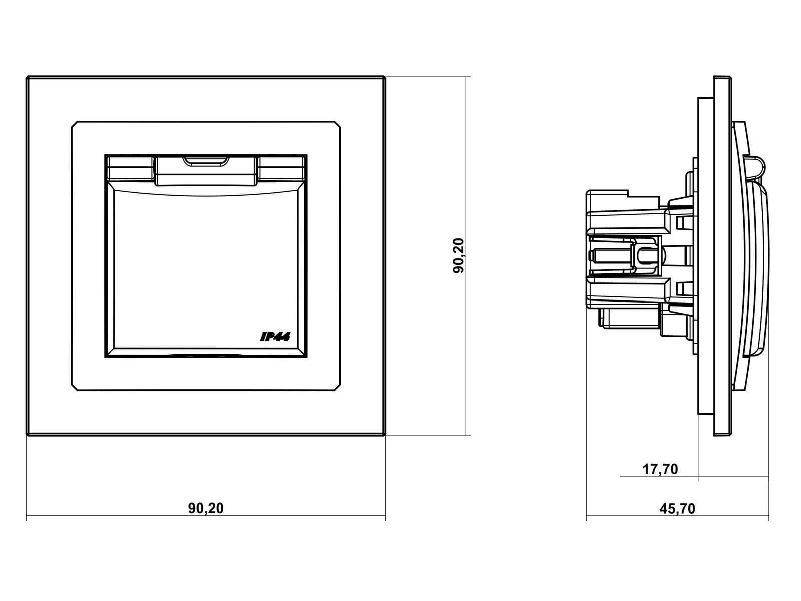 - Model: gniazdo bryzgoszczelne z uziemieniem