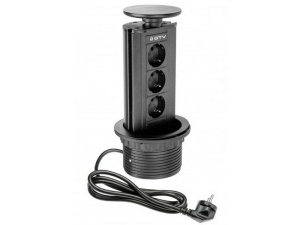Gniazdo meblowe Ø10cm wysuwane z blatu przewód 1,5m 3x2P+Z schuko czarne