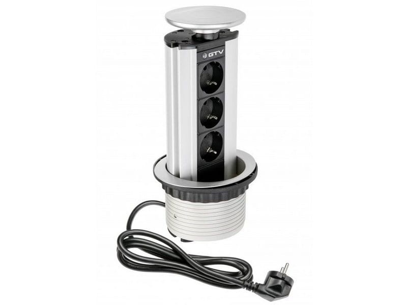 Gniazdo meblowe Ø10cm wysuwane z blatu przewód 1,5m 3x2P+Z schuko srebrne
