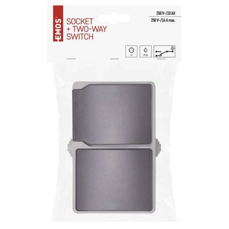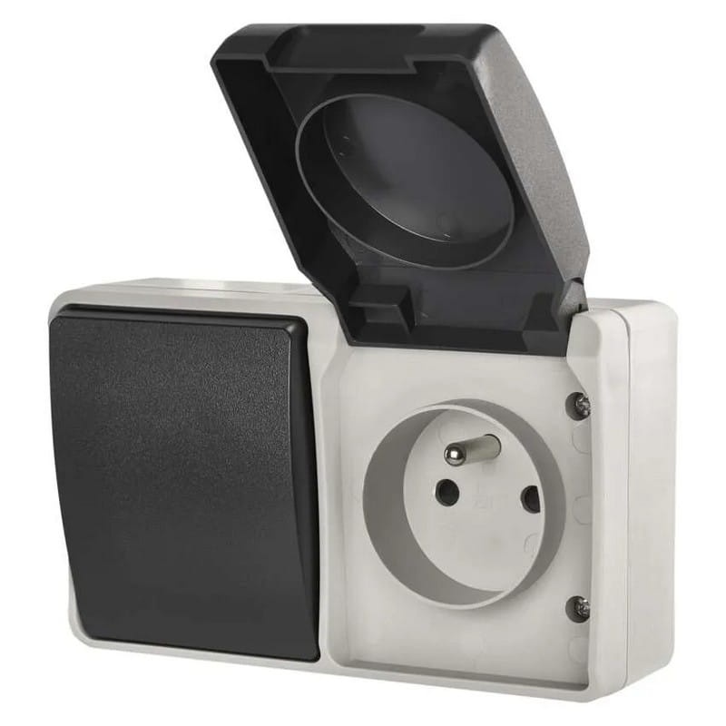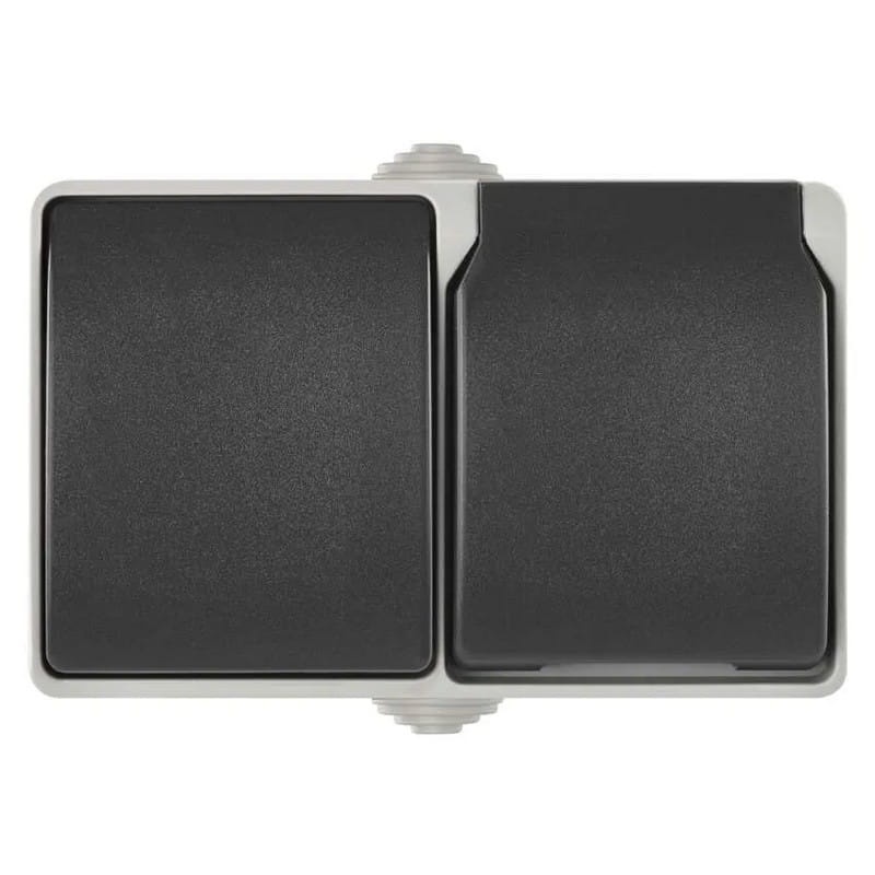 Gniazdo natynkowe i wyłącznik schodowy szaro-czarne IP44