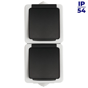 Gniazdo zasilające podwójne francuskie z ochroną styków pionowe IP54 TEKNO 05-2220-143 szare