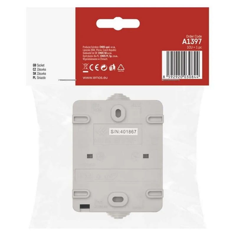 Gniazdo pojedyncze natynkowe szaro-czarne IP54 Emos A1397