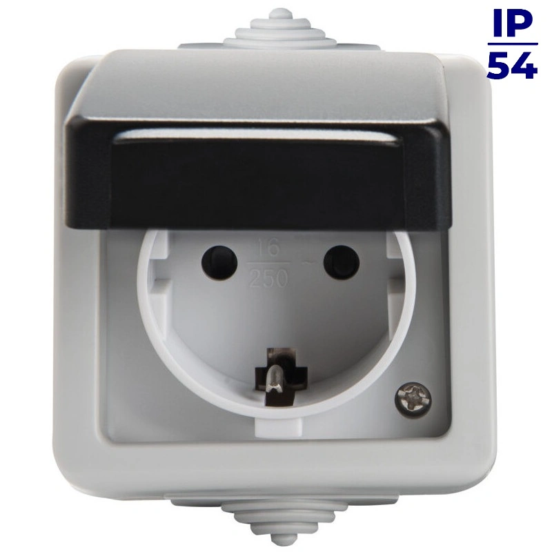 - Klasa szczelności IP54 pozwala stosować gniazdo w trudniejszych warunkach.