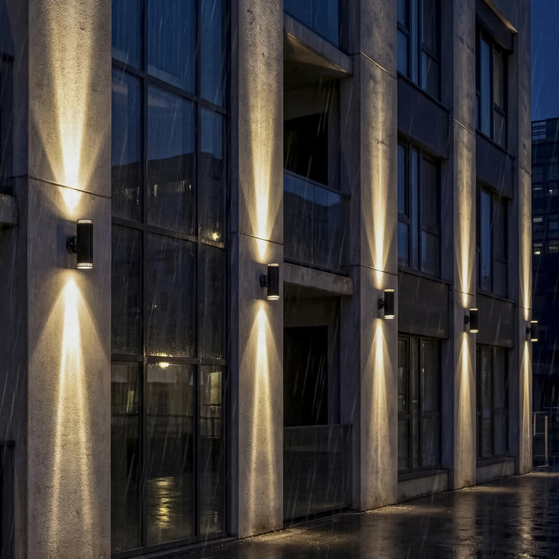 Wykonana z trwałego stopu aluminium i poliwęglanu obudowa zapewnia odporność na warunki atmosferyczne potwierdzoną klasą IP44. Oprawa mieści dwa źródła światła GU10 (max 2x11W), pozwalając na swobodny dobór barwy i mocy oświetlenia, które w połączeniu z czarnym, minimalistycznym designem tworzy nowoczesny i praktyczny element dekoracyjny elewacji.