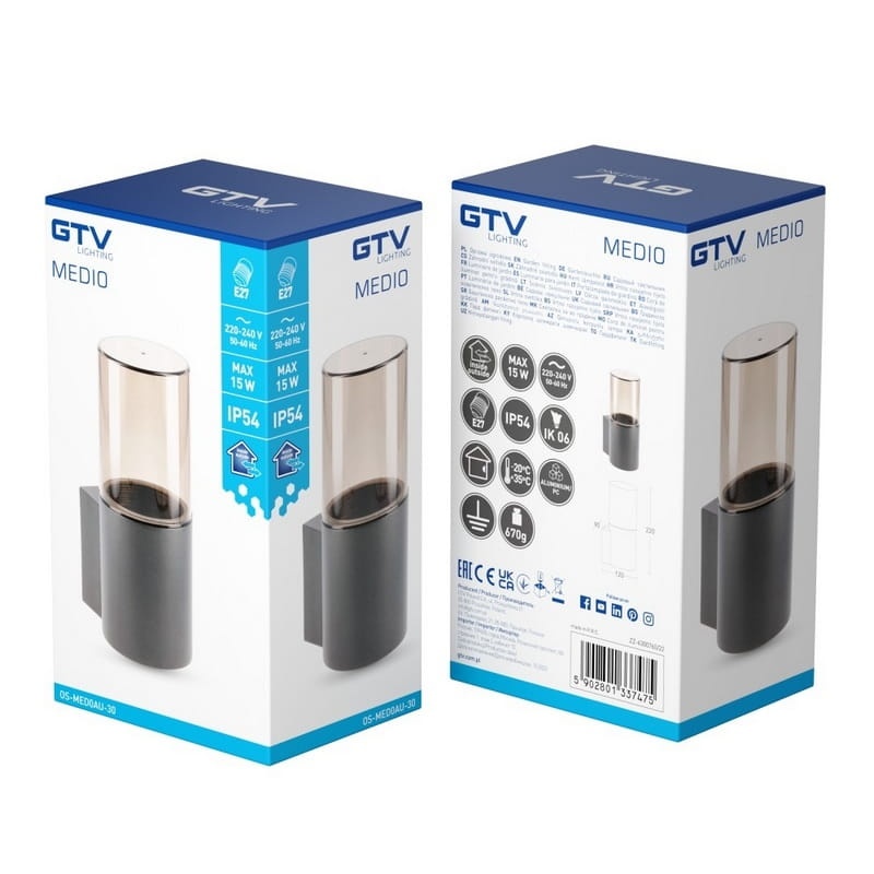 Oprawa ogrodowa MEDIO-AU 22cm E27 IP54 kinkiet prosty górny grafit GTV