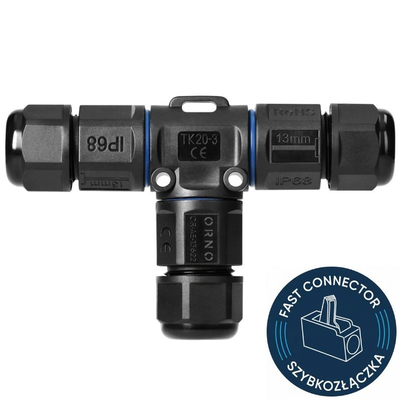 Konektor kablowy typu T OR-AE-13622 to profesjonalne rozwiązanie dla instalacji wymagających szczelności, trwałości i wygodnego montażu. Dzięki szybkozłączce, odpornej obudowie PA6 oraz klasie ochrony IP68 gwarantuje pewne i długotrwałe połączenia nawet w najbardziej wymagających warunkach.