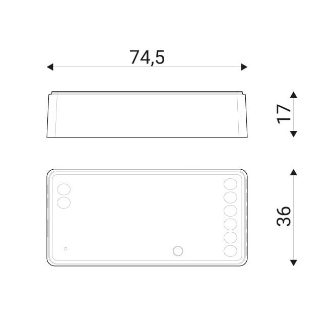 - Wymiary: 74.5 x 36 x 17 mm