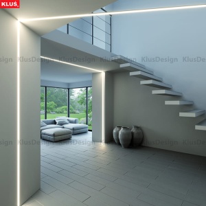 Stosując kształtki wraz z profilami i listwami liniowymi E5-S540x22 opartych na markowych diodach firmy OSRAM z naszej oferty można zbudować liniowe, bez widocznych punktów LED, oświetlenie w dowolnych kształtach i płaszczyznach jak pokazano na zdjęciach poniżej.