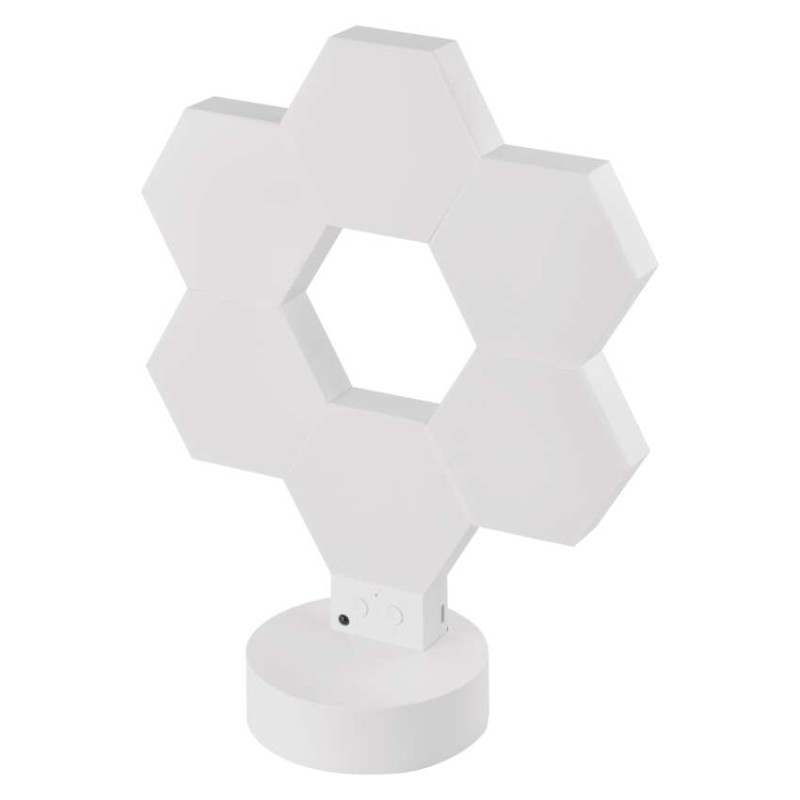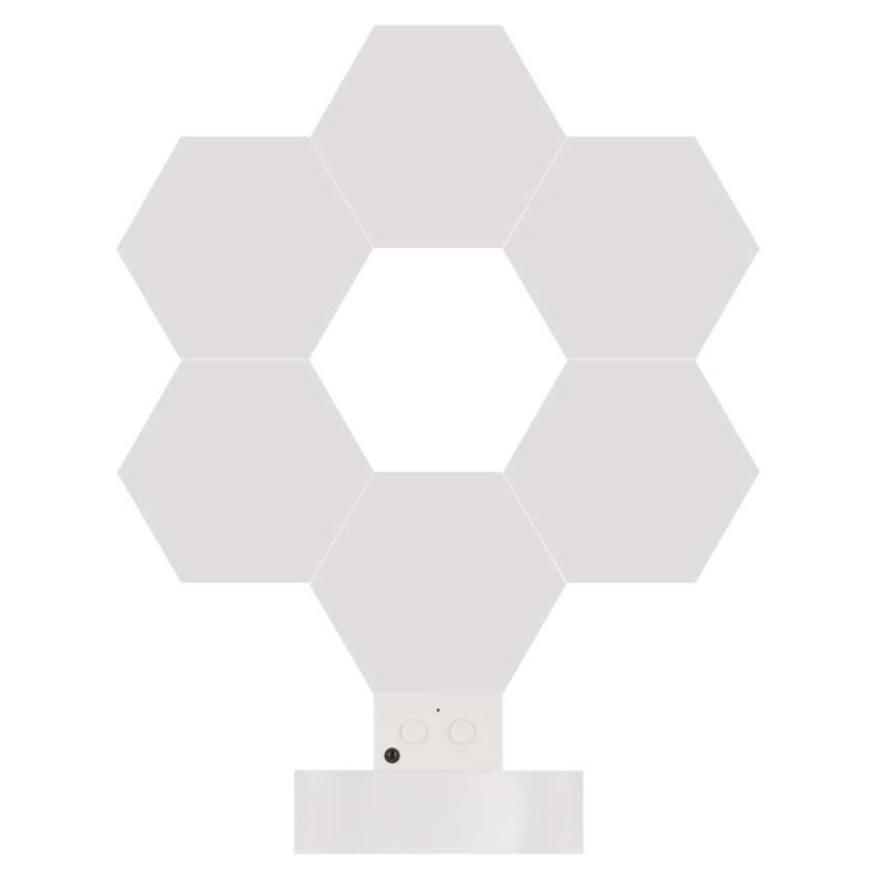 Lampa składa się z 6 paneli w kształcie heksagonów, które można dowolnie układać i zmieniać ich konfigurację. Dzięki temu produkt pełni nie tylko funkcję oświetlenia, ale także dekoracji wnętrza. Możesz ustawić ją na biurku lub zamontować na ścianie za pomocą taśmy montażowej.