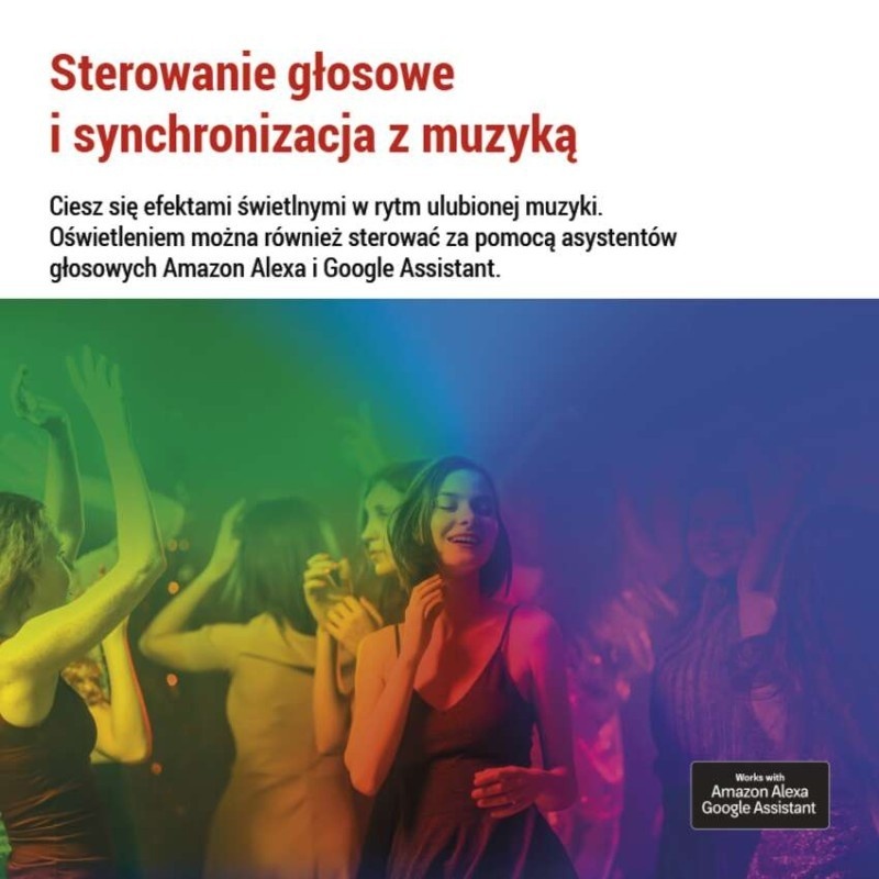 - Sterowanie aplikacją, głosem lub bezpośrednio na lampie