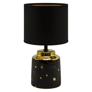 HELENA to lampa stołowa marki STRÜHM, która świetnie pasuje do wielu wnętrz. Przystosowana została do źródła światła E14 o maksymalnej mocy 25W. Lampa wykonana została ze wzmacnianej tkaniny barwionej na czarno oraz czarnej podstawy upstrzonej złotymi plamkami imitującymi krople farby. HELENA świetnie sprawdzi się jako lampka przy łóżku lub jako dodatkowe oświetlenie w strefie wypoczynku. Brak źródła światła w zestawie!