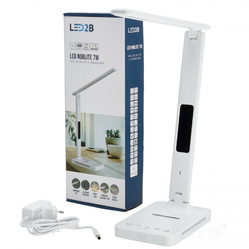 Lampka biurkowa LED2B NOBLITE 7W – z wyświetlaczem, ładowaniem i regulacją barwy światła