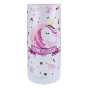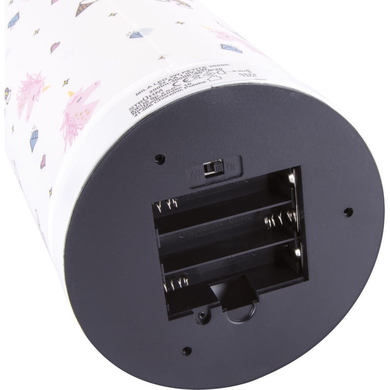 MILA to lampka nocna doskonała do dziecięcego pokoju. Została wykonana ze stali oraz polipropylenu. Utrzymana w różowym tonie grafika przedstawia głowę jednorożca i napis "PETITE PRINCESSE". Lampka przystosowana jest do zasilania bateryjnego AA i charakteryzuje się ciepłą barwa światła. Brak baterii w zestawie!