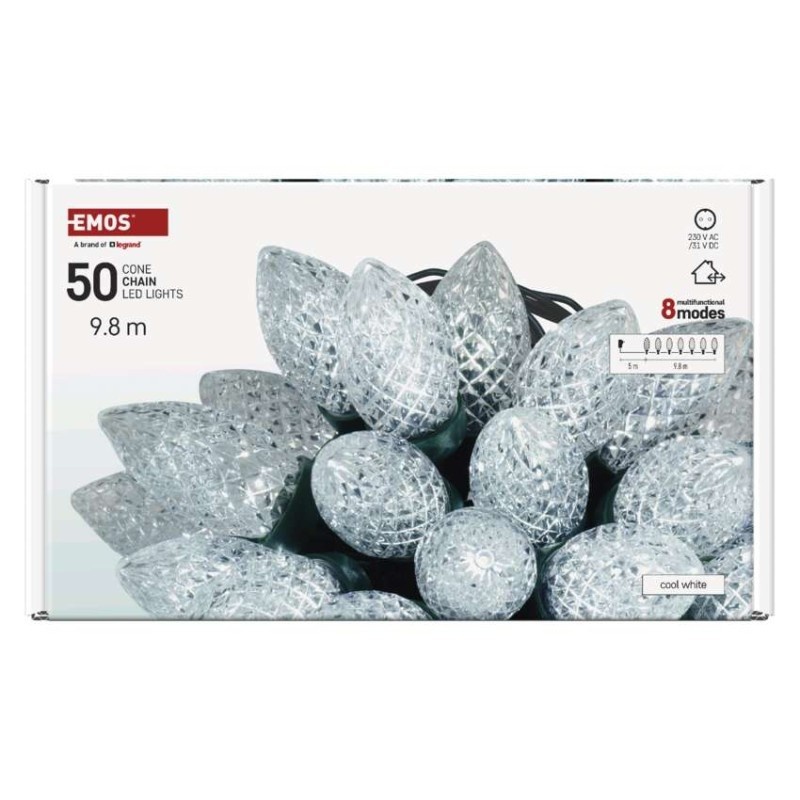 Łańcuch świąteczny LED 50led szyszki zimna biel 9,8m 8 trybów IP44 D5ZC01 Emos