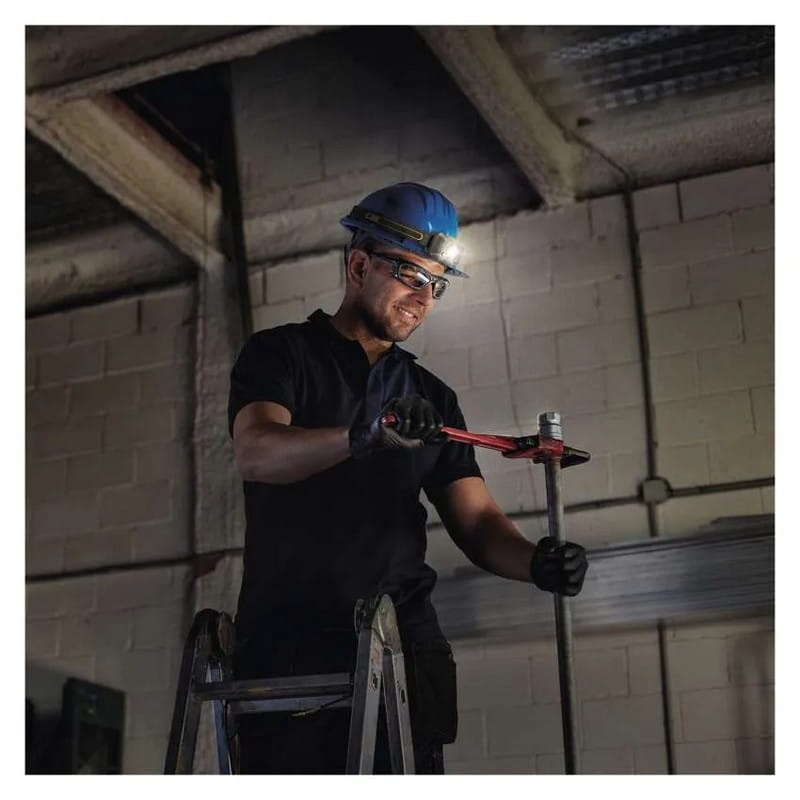 Lampa czołowa GP Discovery CHW54 to wytrzymałe, wodoodporne urządzenie z zasięgiem do 110 m i strumieniem świetlnym 375 lm. Oferuje 4 tryby świecenia (100%, 55%, 20%, 12%) oraz funkcję zmiany intensywności światła jednym machnięciem ręki. Dzięki pochyleniu o 60° i regulowanemu paskowi, idealnie dopasowuje się do kasku roboczego. Wytrzymuje upadki z 5 m oraz deszcz (IPX5). Jest kompatybilna z akumulatorami NiMH, co czyni ją ekologiczną i oszczędną.