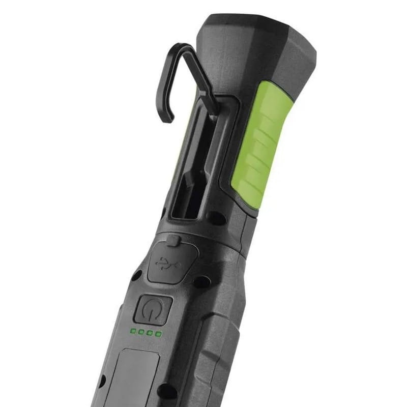 P4544 o latarka z wbudowanym akumulatorem firmy EMOS. Dzięki ładowalnemu źródłu zasilania (akumulator Li-Ion) latarkę wystarczy naładować (USB-C), po jedynie 4 godzinach, można cieszyć się jej światłem nawet do 11 godziny. Produkt wykonany został z wysokiej jakości materiałów i posiada stopień ochrony IP54 - wodoodporna. Lampa warsztatowa posiada mocne źródła światła COB LED oraz SMD LED. Produkt wykonany został z najwyższej jakości tworzywa ABS oraz pogumowania. Lampa wyróżnia się wysoką odpornością na uderzenia oraz posiada ochronę przed przeładowaniem. Dodatkowym atutem jest wskaźnik LED stanu i ładowania akumulatora, hak oraz magnes. Funkcja szybkiego wyłączania umożliwia wygodne wyłączenie lampy wyposażonej w kilka trybów świecenia. Po prostu świecimy sobie tak, jak potrzebujemy, a potem gasimy lampę tylko jednym naciśnięciem przycisku – bez konieczności przechodzenia przez wszystkie pozostałe tryby. Latarka posiada również możliwość działania jako powerbank - gniazdo USB-A.