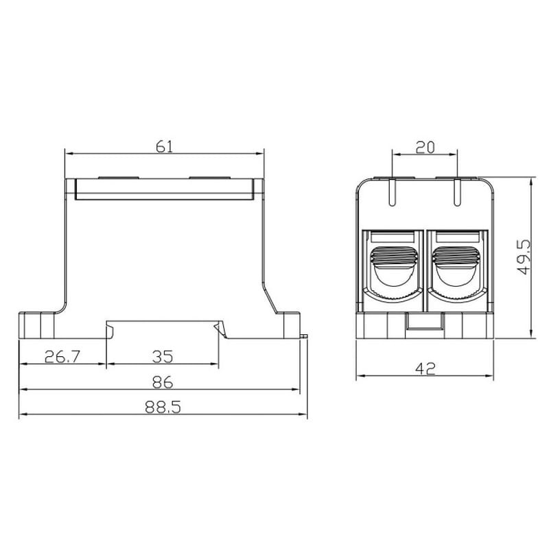 - Przekrój przyłączanego przewodu jednodrutowego [mm²]: 16-95