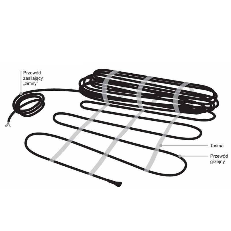 - Przewód grzejny zakończony jest z jednej strony przewodem zasilającym: tak